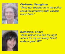 When appearing in this pamphlet, Christine said: "Anne got straight on to the police about the problems with vandals round here."