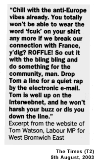 You may have noticed that – after months of campaigning – I pretty much backed off on the whole Tony Blair email thing when war broke out. I had what I considered to be a pretty solid promise of delivery, and it was pretty obvious that they weren’t about to launch it at a time when the system was likely to be immediately overloaded.