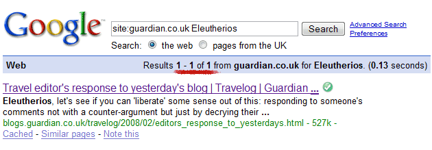 2. Some guy called ‘Eleutherios’ who, to date, has only made a single comment on the Guardian website (and just happens to agree 100% with ‘Maxdad’).