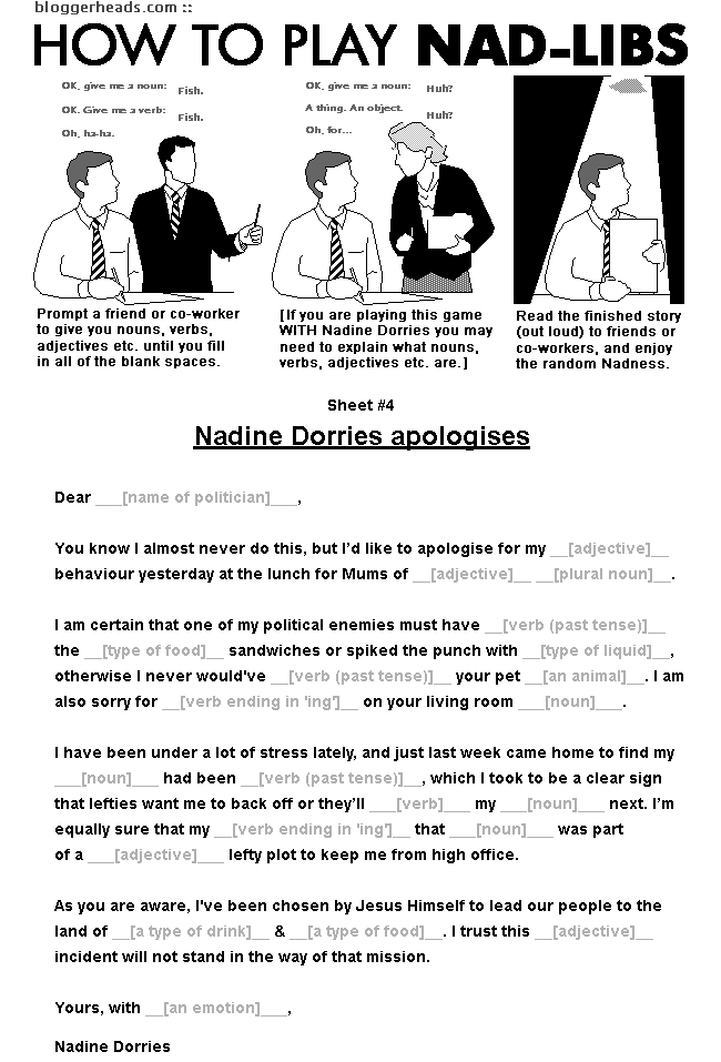 Nadine Dorries is a Conservative MP and someone I have been highly critical of since she published and maintained a highly damaging and entirely false allegation about one of her critics, and began using dishonest moderation techniques on her ‘blog’ to avoid being called to account.