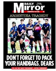 This, ladies and gentlemen, is the front page of today’s Mirror. You can see a larger version of this here (or, if you’re reading the archives, you might want to go here instead).
